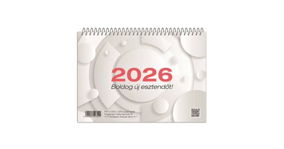 Fehér lapos, perforált asztali naptár. 19,13,5 cm 54 lapos 70 g papírból.