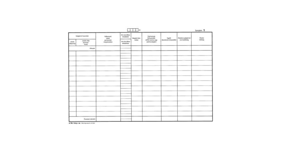 A. TM. 13/Új Gépjármű használati nyilvántartási nyomtatvány. Fekvő, A/4-es méretű, 1-től 25-ig lapsorszámozva.