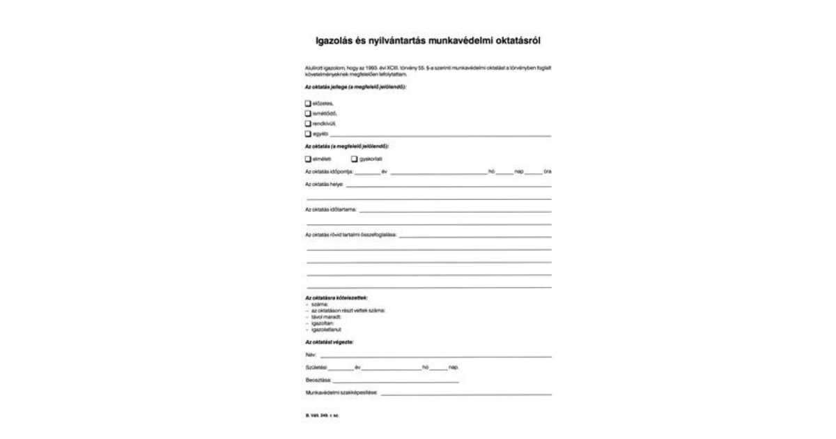B. Váll-349 Munkavédelmi oktatási napló, 24 lapos füzet A/4 álló.