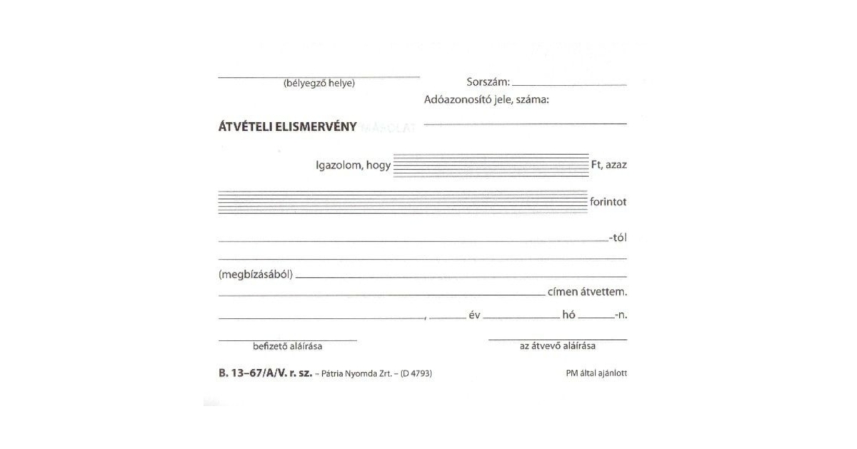 B.13-67/A/V Átvételi elismervény önindigós 50x3 példányos