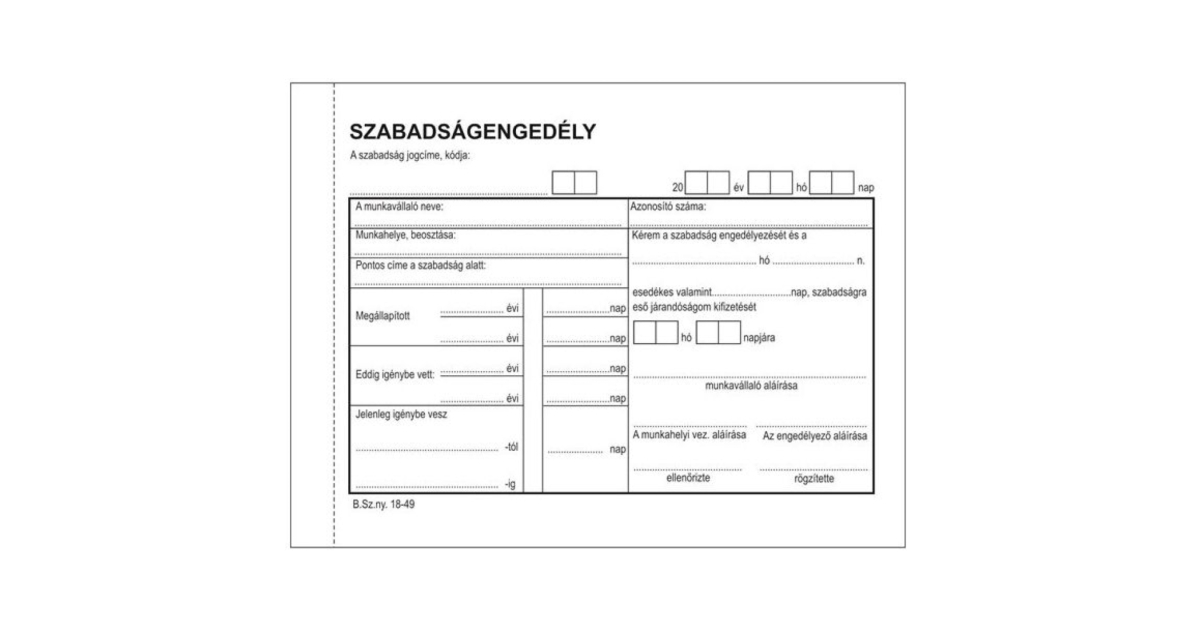 Szabadságengedély, 25x2 példányos önindigós, vegypapírból készült. Indigó használat nem szükséges. Méret: A/6-os.