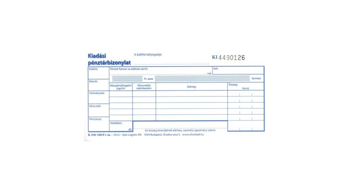 Kiadási pénztárbizonylat, 5 soros, 25x2 példányos önindigós, vegypapírból készült. Indigó használat nem szükséges.