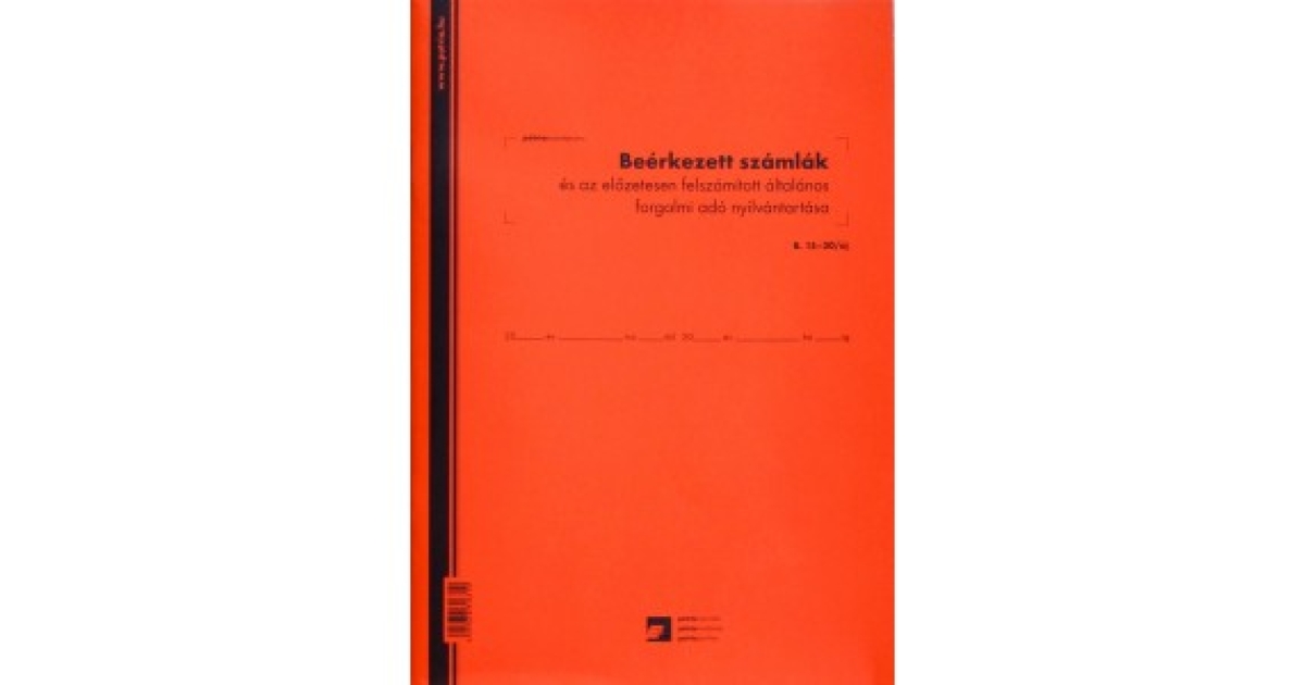 Beérkezett számlák és az előzetesen felszámított általános forgalmi adó nyilvántartó 50 lapos füzet 3 Áfás 240x340 mm.