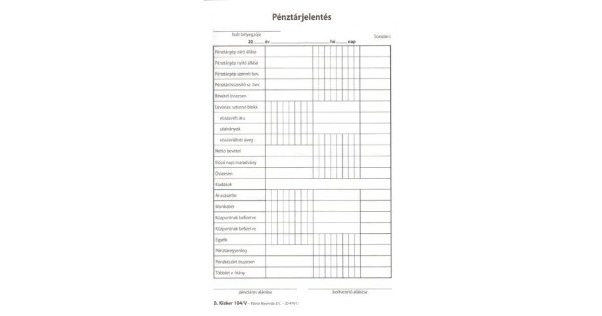 B.KISKER.104/V Pénztárjelentés 25x2+2 példányos