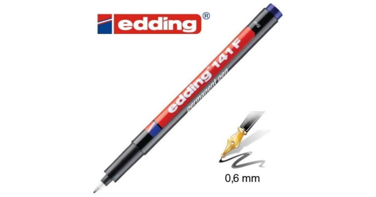 Edding 141-es alkoholos filctoll F-es kerek hegyű. Írásvastagság 0,6 mm kék