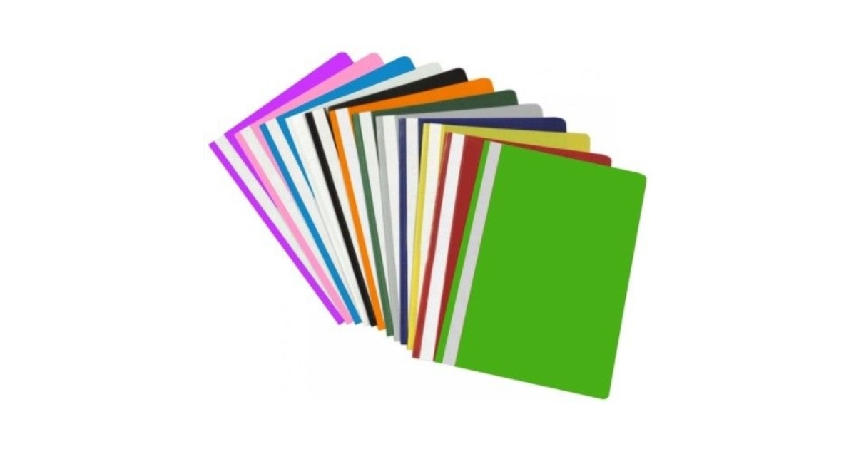 Műanyag fűzős dosszié, átlátszó fedlappal és színes puha hátoldallal.