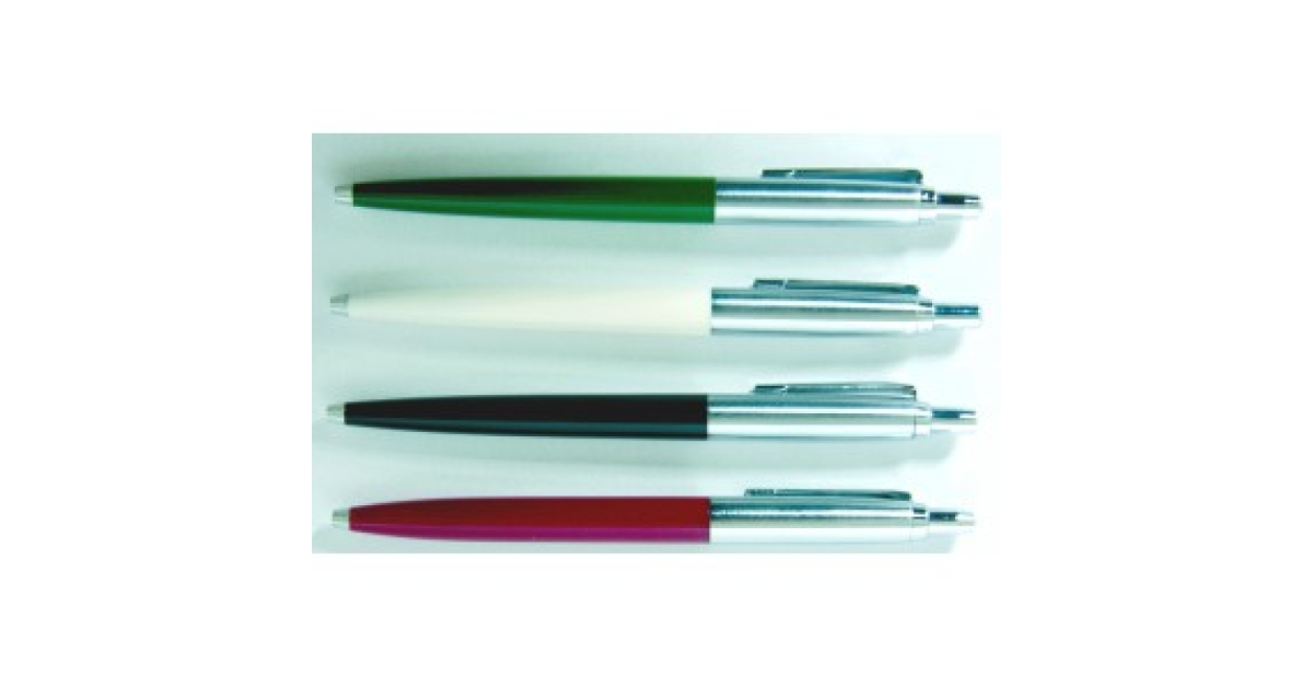 Egyszerűbb kivitelű, alacsony árfekvésű, PAX típusú nagytartályos betéttel szerelt nyomógombos golyóstoll. Írásszín: kék. Írásvastagság: 0,7mm.
