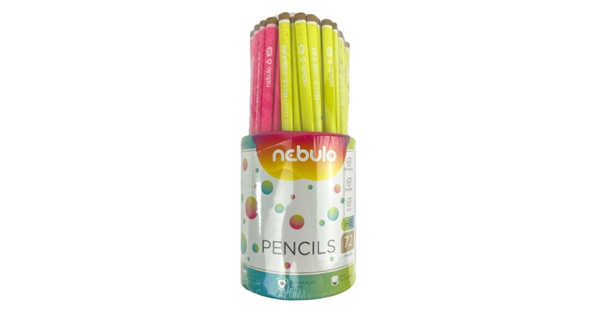 Háromszög grafit ceruza élénk rózsaszín, kék és sárga színben. Keménység: HB