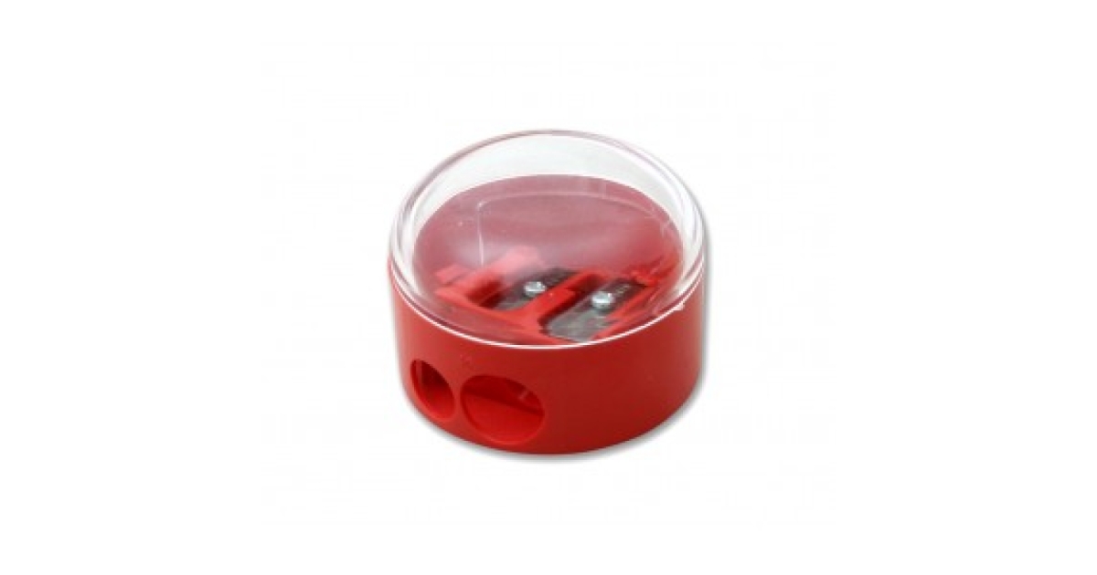 Műanyag tartályos hegyező 2 lyukú normál, vastag méretű grafit- és színes ceruza hegyezéséhez. Színválaszték: piros, zöld, kék