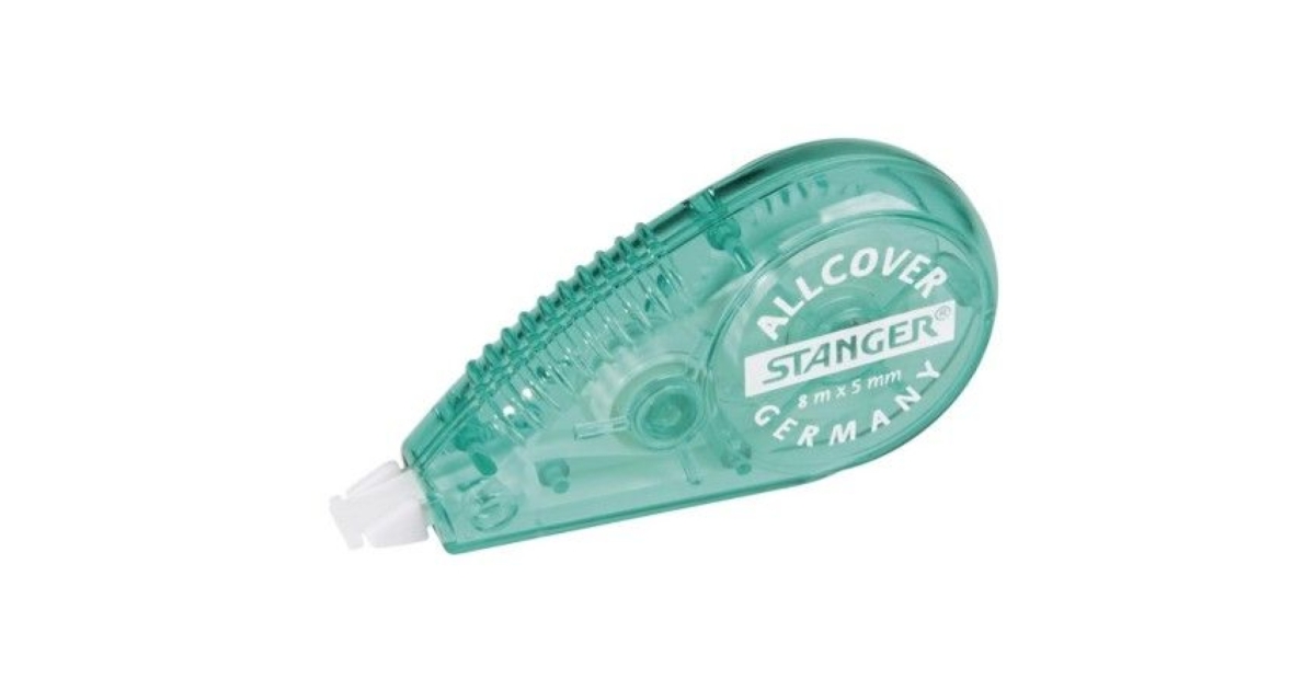 Stanger All Cover eldobható hibajavító roller, elrontott szöveg javításához. A javítás után azonnal felül írható, nem kell a száradásra várni. Átlátszó zöld külsővel. Szalag mérete: 5 mm széles 8 m hosszú