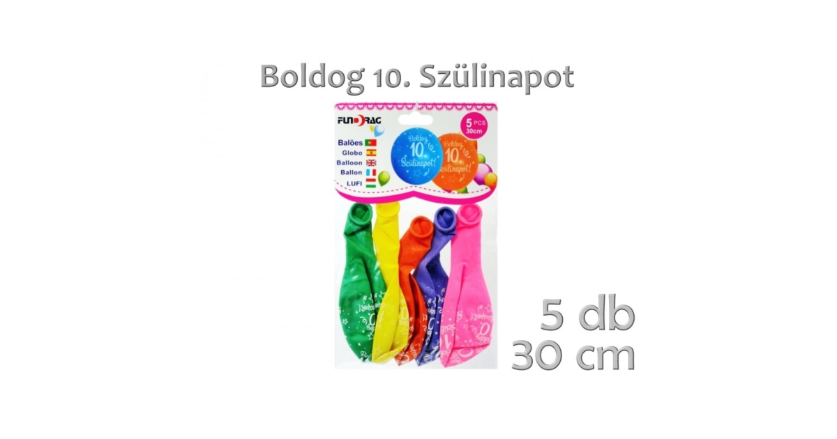Lufi Boldog 10. Szülinapot színes 5db 30cm