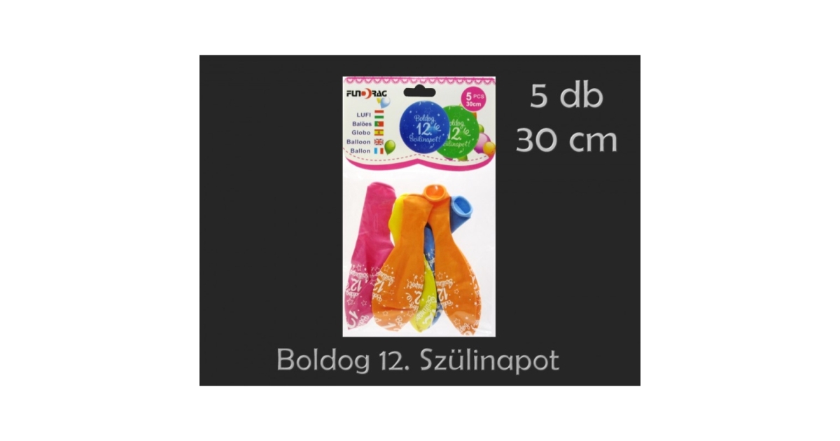 Lufi Boldog 12. Szülinapot színes 5db 30cm