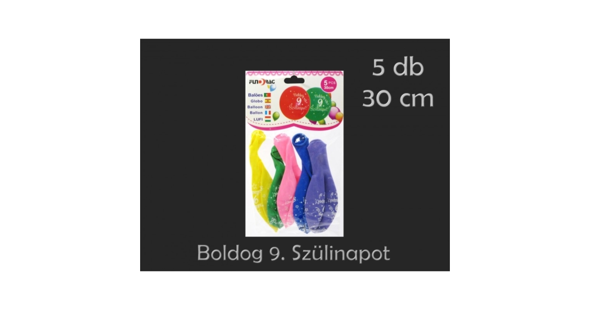 Lufi Boldog 9. Szülinapot színes 5db 30cm