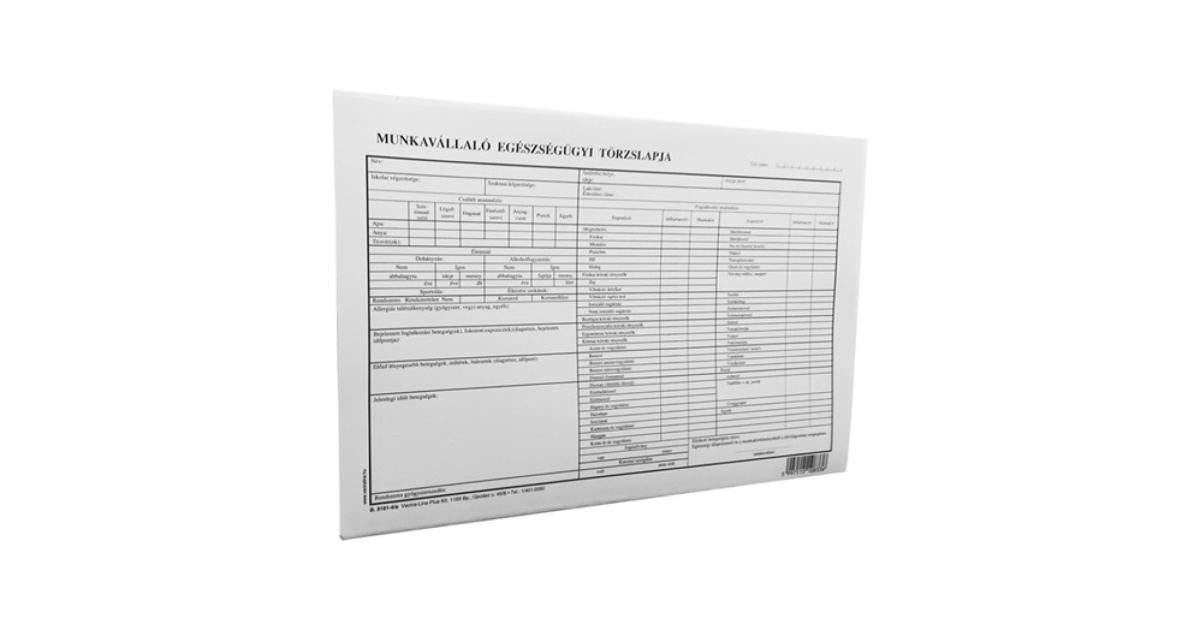 Nyomtatvány munkavállaló egészségügyi törzslapja