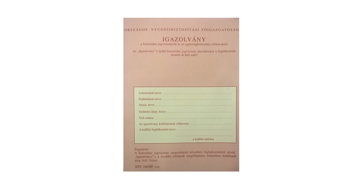 Nyomtatvány TB igazolvány