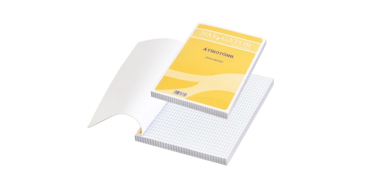 Önátírós, 50 lapos, kétpéldányos, vegykezelt papírból készült önátíró tömb, melyhez indigó használata nem szükséges. Eső példány franciakockás, a másolatok sima lapon jelennek meg.