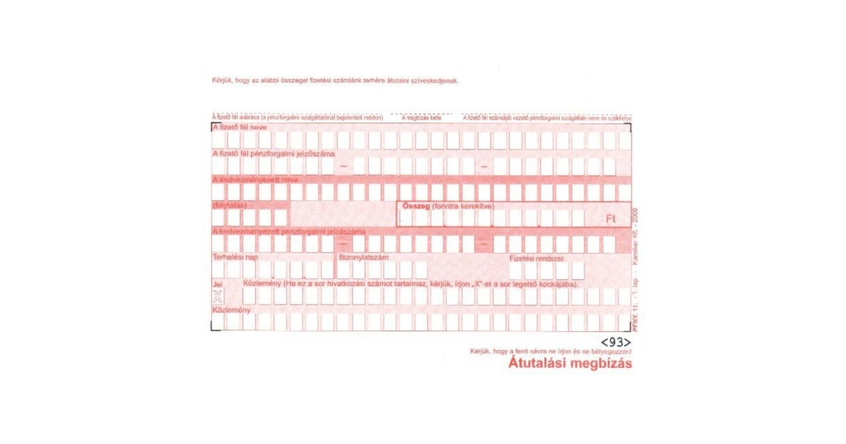 Banki átutalási megbízás, 2 példányos. Indigó használata nem szükséges.Méret: A/6-os, fekvő.