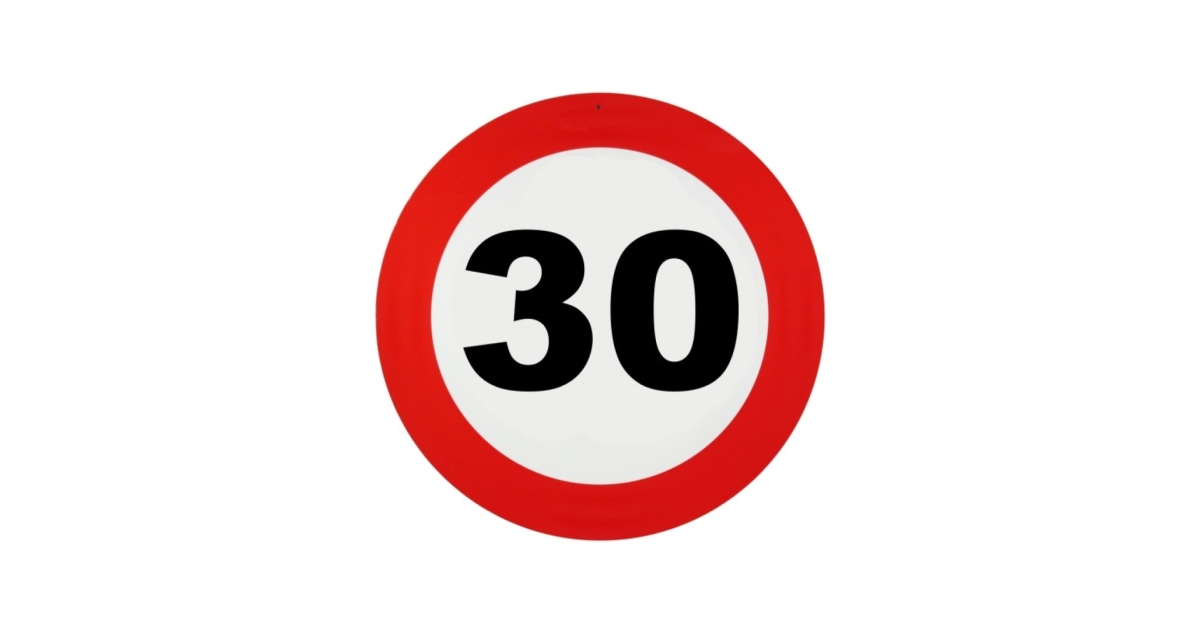 A Sebességkorlátozó tábla mérete 40 cm átmérőjű kör. Az elején és a hátoldalán is ugyan az a minta van.