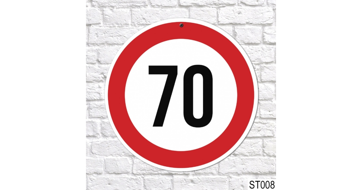 A Sebességkorlátozó tábla mérete 40 cm átmérőjű kör. Az elején és a hátoldalán is ugyan az a minta van.