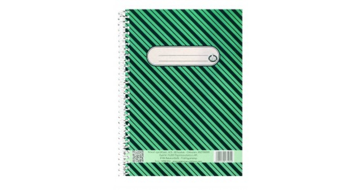 Hagyományos 80 lapos spirálfüzet A/5 méretben, magyar szabványnak megfelelő lineatúrákkal.