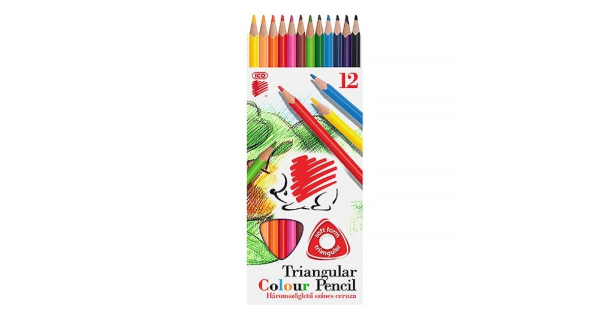 Színes ceruza ICO Süni háromszögletű 12 db/készlet