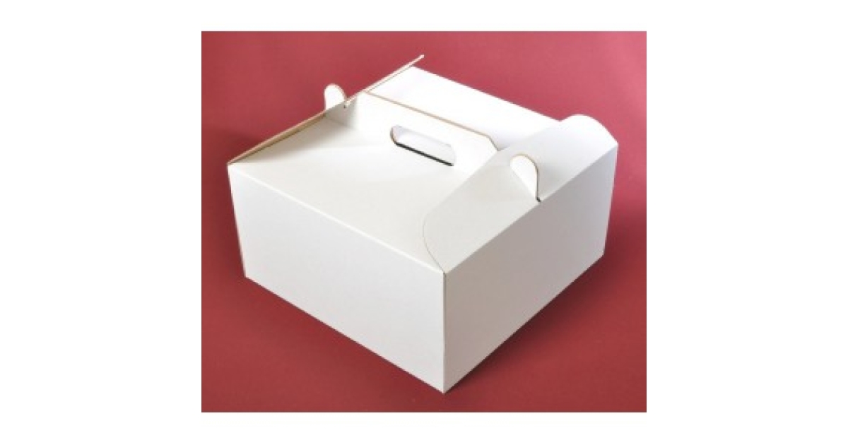 Kiváló minőségű alapanyagból gyártott fehér önzáródós füles tortadoboz. Méretei: 35x35x18 cm.