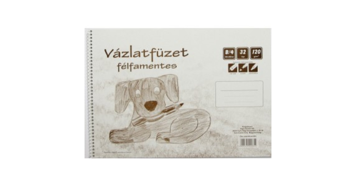 Vázlatfüzet B/4-es méretben 32 lapos, sima lapú, félfamentes papír.