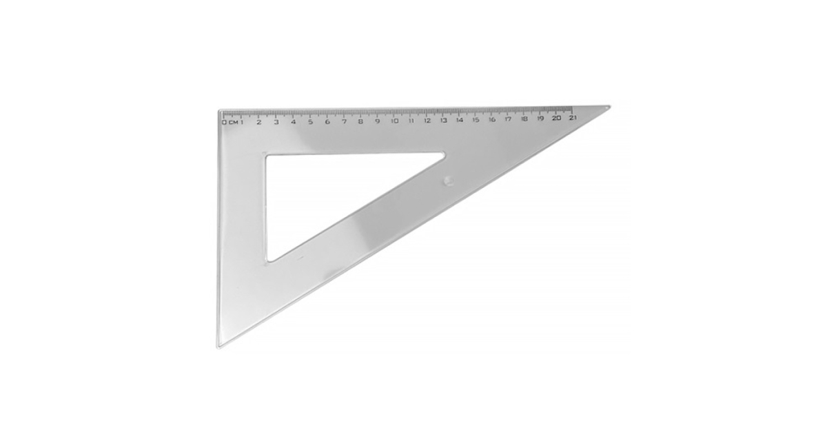 Átlátszó, műanyag, háromszög vonalzó 23cm élű.