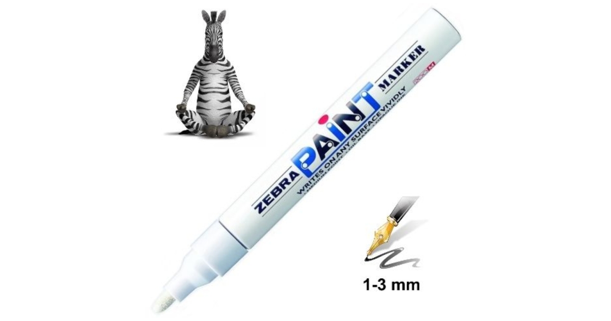 Zebra lakkfilc száradás után nem törölhető. Írásvastagság 1-3 mm fehér